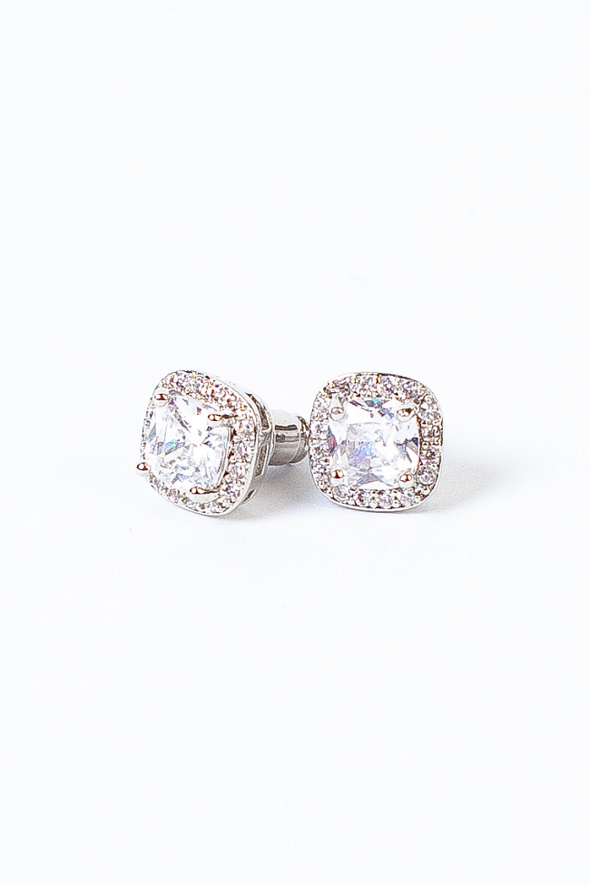 Серьги-гвоздики с прозрачным кристаллом