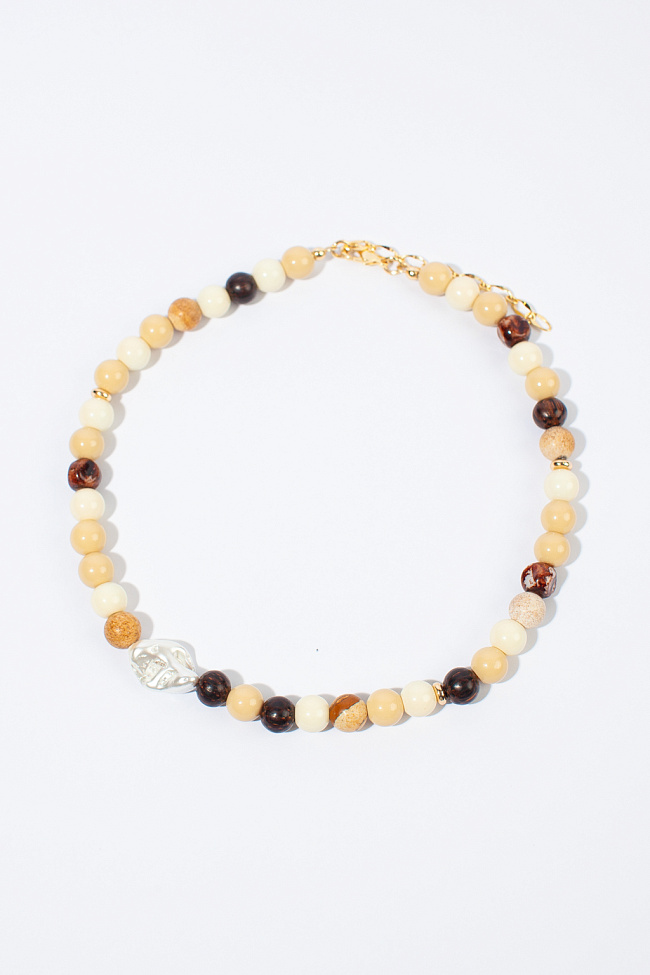 Колье нежного молочного цвета с золотистыми жемчужинами
